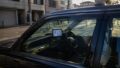 タクシー車内で飲み物やタオルを置きながら短い休憩を取る運転手の様子