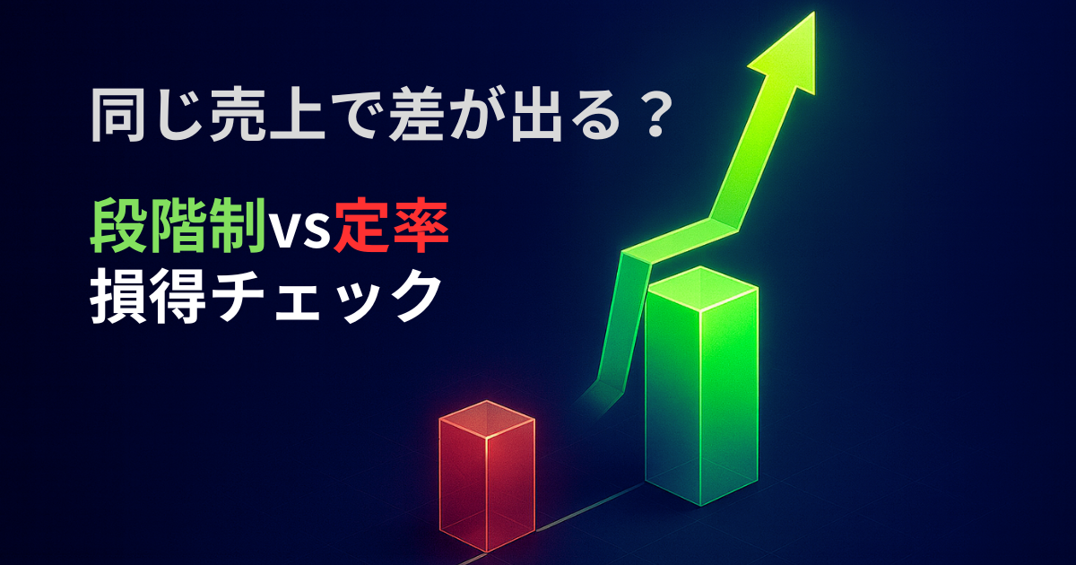 □ 段階制 or 定率 or 混合? □ 段階制の場合、閾値は何万円? □ 最大歩率は何%? □ あなたの目標売上で有利なのはどちら? |